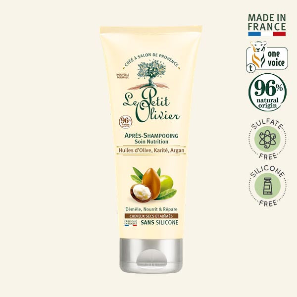 Cuidar tu cabello es esencial para que sea naturalmente bello. Después del shampoo, el acondicionador es el siguiente paso en la rutina de cuidado y desenredado del cabello. Fácil de aplicar este es el paso de belleza que marca la diferencia para tener un cabello radiante. El acondicionador nutritivo con aceites de Oliva, Karité y Argán de Le Petit Olivier desenreda, nutre y repara el cabello seco y dañado. Su textura generosa y su fragancia hacen de este acondicionador un verdadero momento de placer y cuidado.